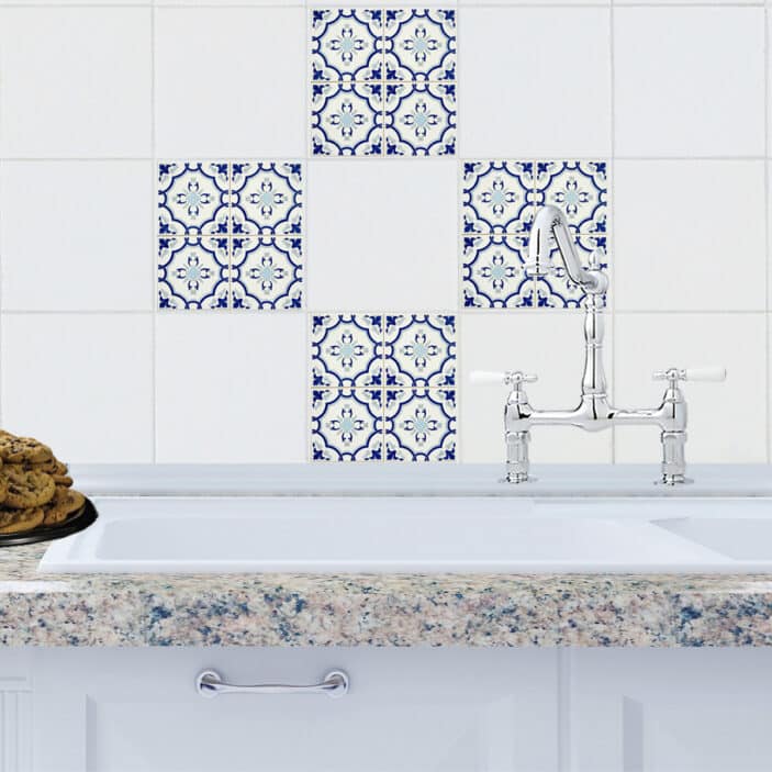 The adhesive backing will bond to your tile using just a few drops of water. If you choose to remove them, then the decals can be peeled away effortlessly, leaving no residue behind. And the upkeep is simple, use a non-abrasive cleanser and cloth to gently clean the surface taking care not to scrub aggressively or turn up any of the corners.