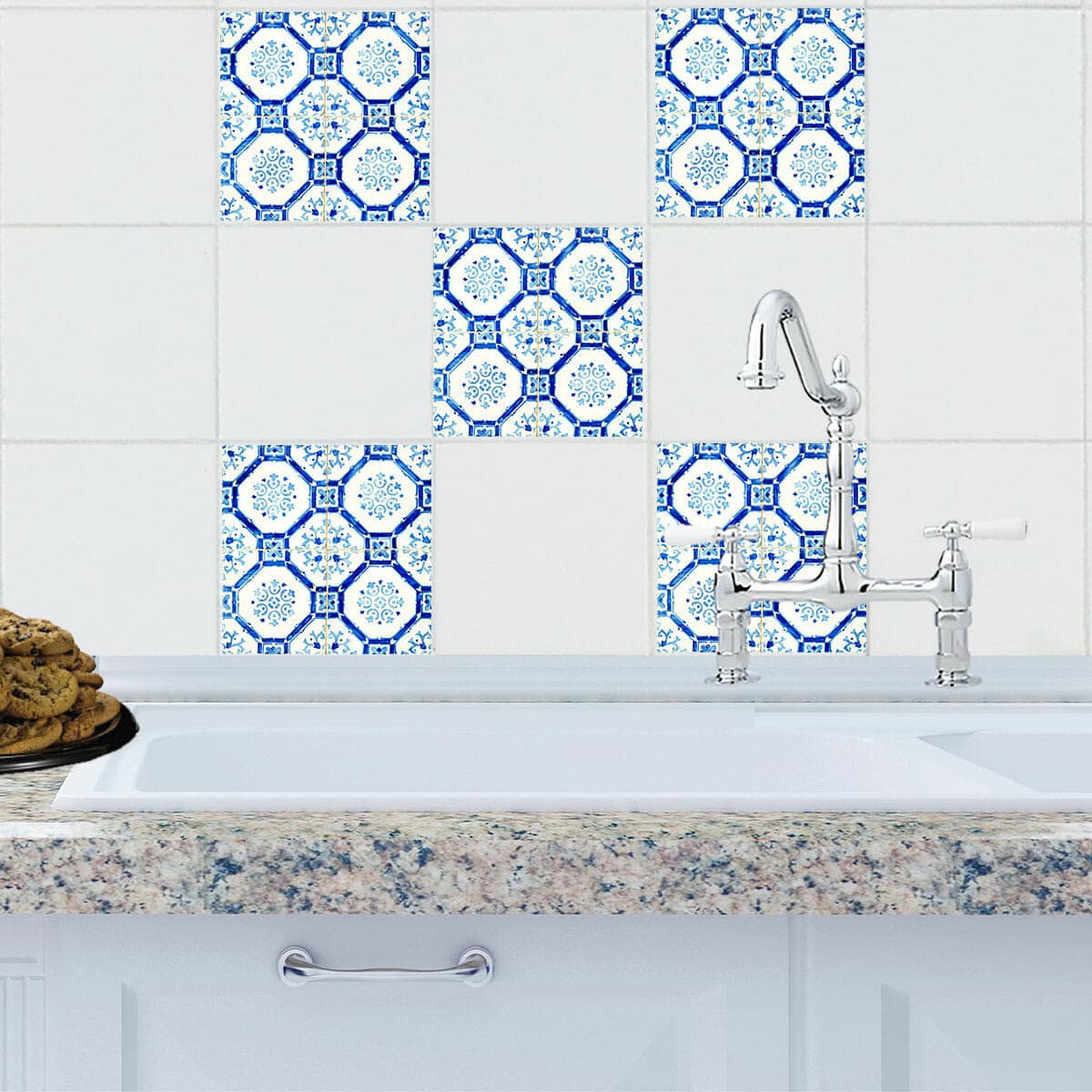 The adhesive backing will bond to your tile using just a few drops of water. If you choose to remove them, then the decals can be peeled away effortlessly, leaving no residue behind. And the upkeep is simple, use a non-abrasive cleanser and cloth to gently clean the surface taking care not to scrub aggressively or turn up any of the corners.